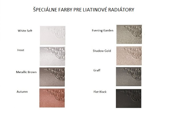 farba * - podľa aktuálneho vzorkovníka farieb pre liatinové radiátory viď. príloha - viac v showroome