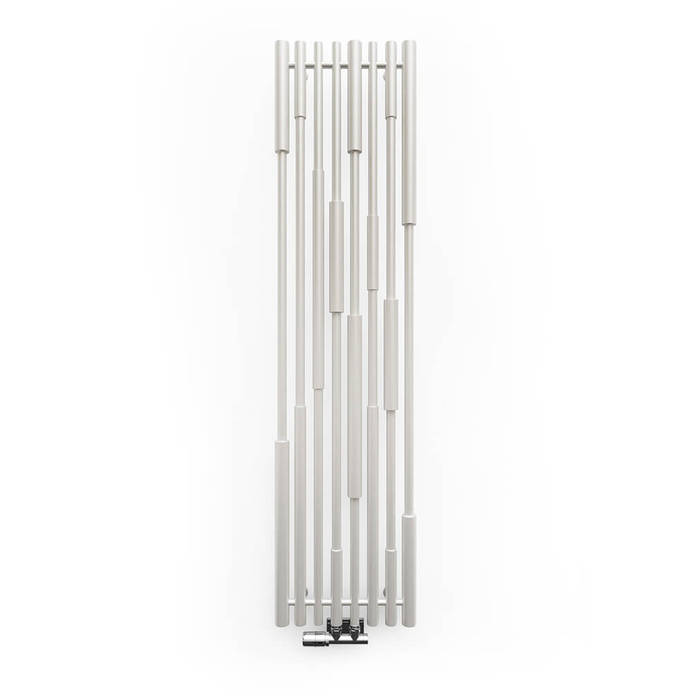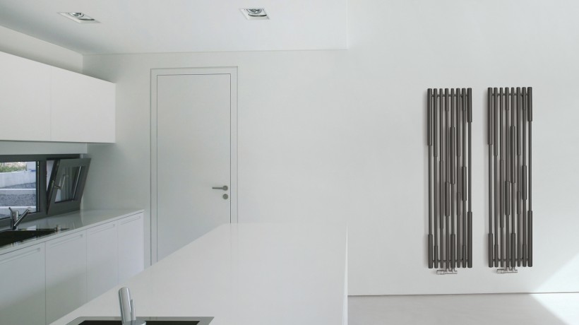 Dizajnový radiátor s rôznym priemerom rúrok (Ø40, Ø32, Ø25), pripomínajúcich trstinu rastúcu na brehoch riek a jazier.