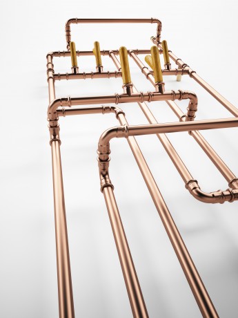 Radiátor je vyhotovený z medených povrchovo neupravených trubiek, čím časom môže chytať tmavšiu patinu.