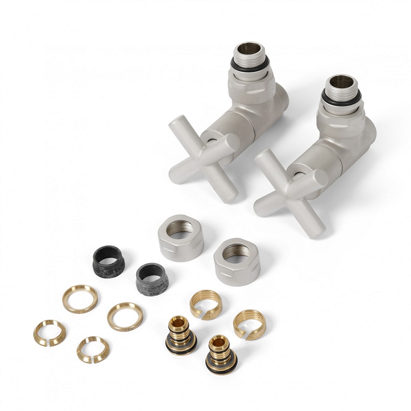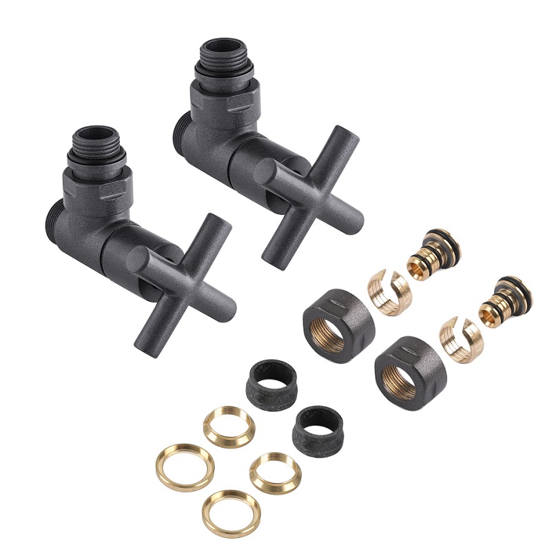 Obsahuje: regulačný rohový ventil "Minimalist", uzatvárací rohový ventil "Minimalist", adaptéry AL-PEX a meď.