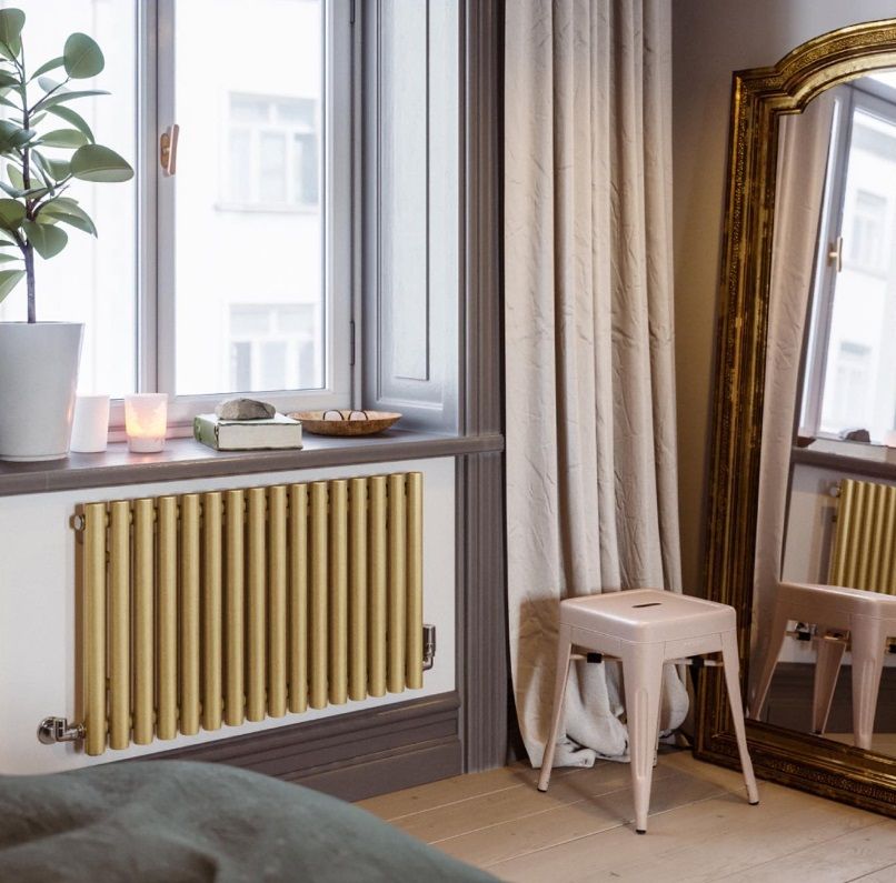 - horizontálny radiátor vytvorený radom vertikálnych kruhových rúrok s priemerom Ø40 mm na kolektoroch s priemerom Ø32 mm