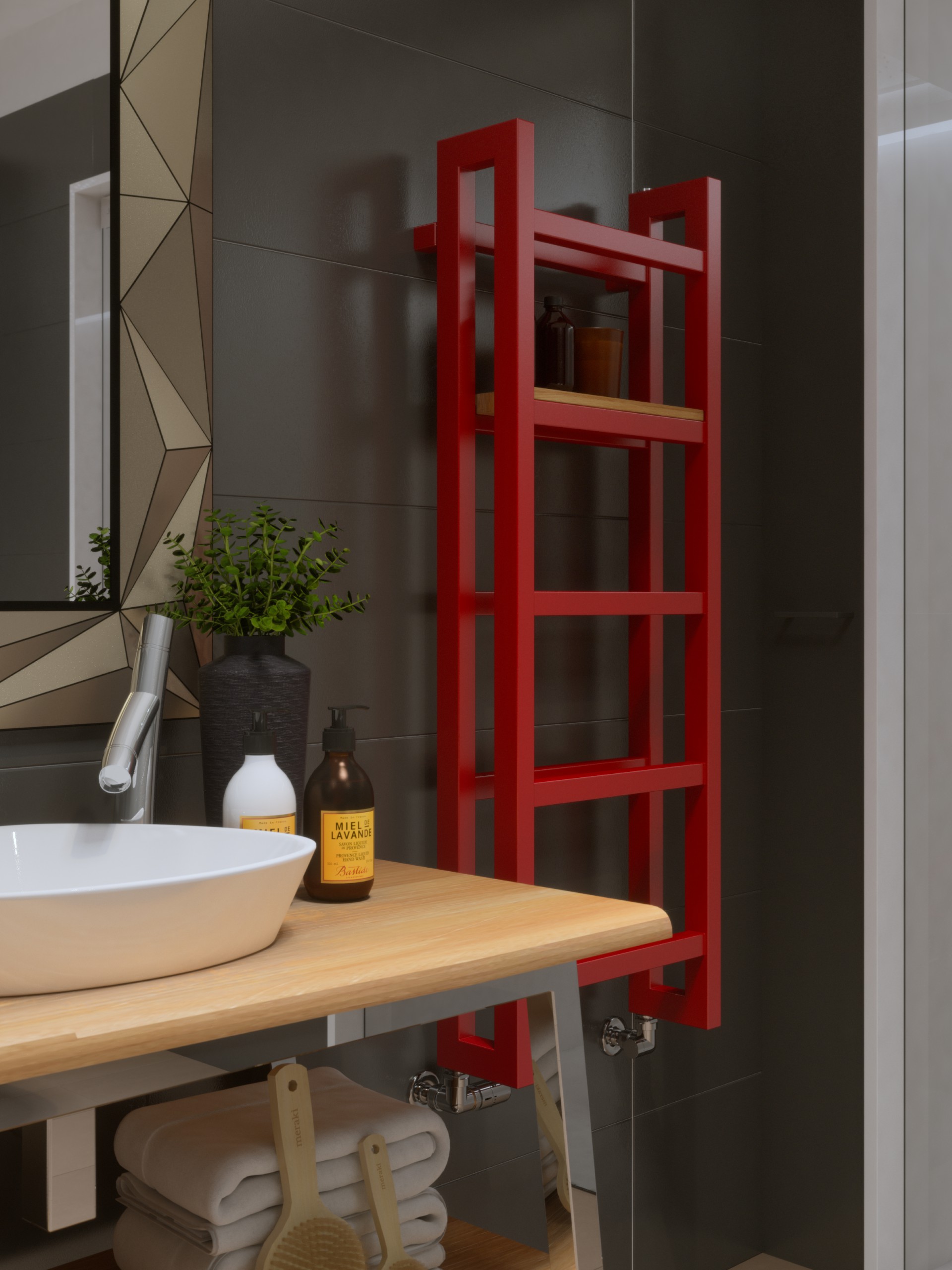 K radiátoru je možnosť si objednať z príslušenstva súpravu ventilov, kryciu súpravu ventilov, výhrevnú tyč s regulátorom aj poličky Stand.