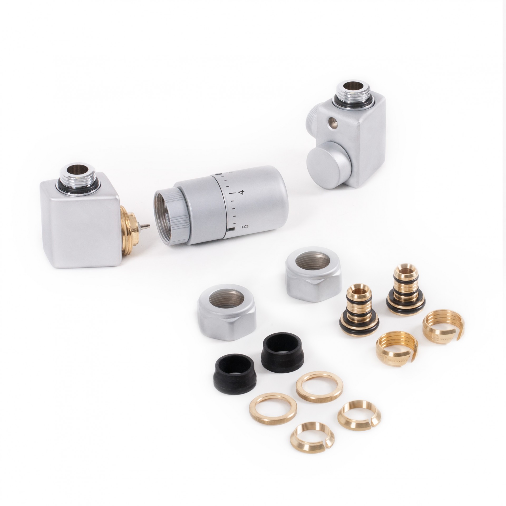 - súprava obsahuje: termostatický ventil, uzatvárací ventil, termostatickú hlavicu SLIM, adaptéry AL-PEX Ø16x2 a meď Ø 15